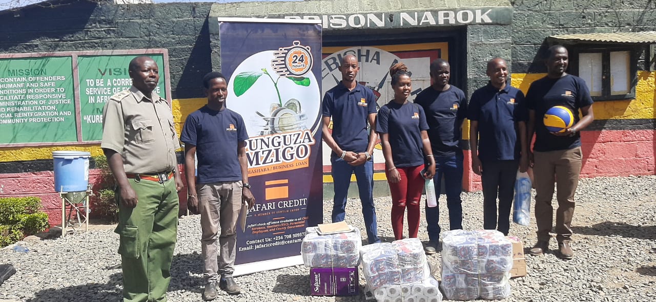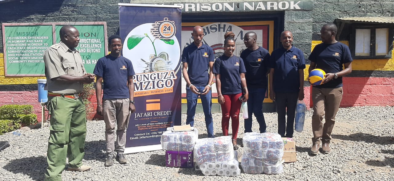 Jafari Credit conducted their first CSR activity in Narok County and the focus was supporting the Narok Prisons by providing personal care essentials and catering to the wellbeing of the inmates. Items such as tissue paper rolls, sanitary pads, bars of soap, a volleyball net, a volleyball etc, were donated.